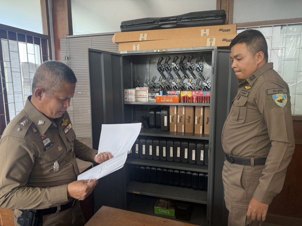พ.ต.อ.รัชพล กิตติคุณชนก ผกก.สภ.ลูกแก พร้อม พ.ต.ท.ตรีโลจ์จนะ ภัสสุวัสม์ รอง ผกก.ป.สภ.ลูกแก ร่วมตรวจห้องจัดเก็บสิ่งของทางราชการ
